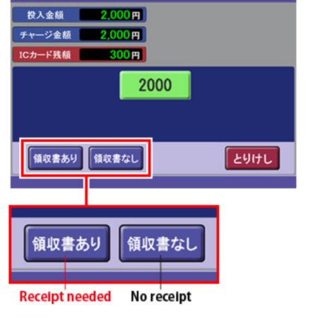 ② If you are charging an ICOCA, then press the bottom right button within the touch panel. Insert your ICOCA and select the amount you would like to charge, and insert your bills. You will be asked if you would like a receipt.